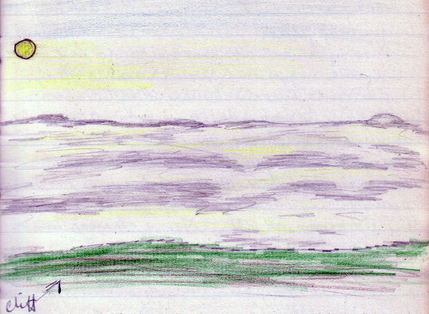 along it - & beyond - a big, wide stretch of calm grey blue sea - one
